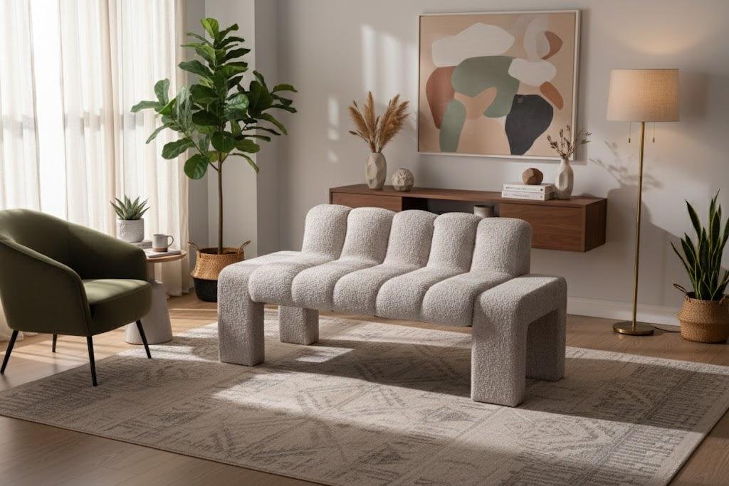 Wholesale Modern Bouclé Sofa Bench with Channel-Tufted Backrest