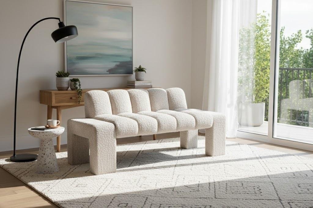 - Premium Bouclé Texture: Upholstered in high-quality, ultra-soft bouclé fabric for a sophisticated minimalist look.