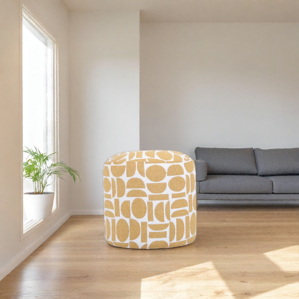 Wholesale Round Geometric Pattern Fabric Pouffe | Modern Accent Ottoman