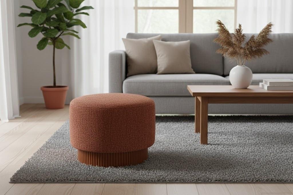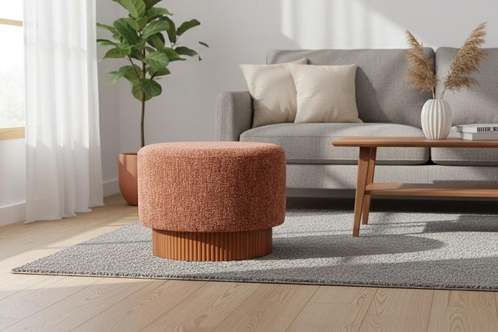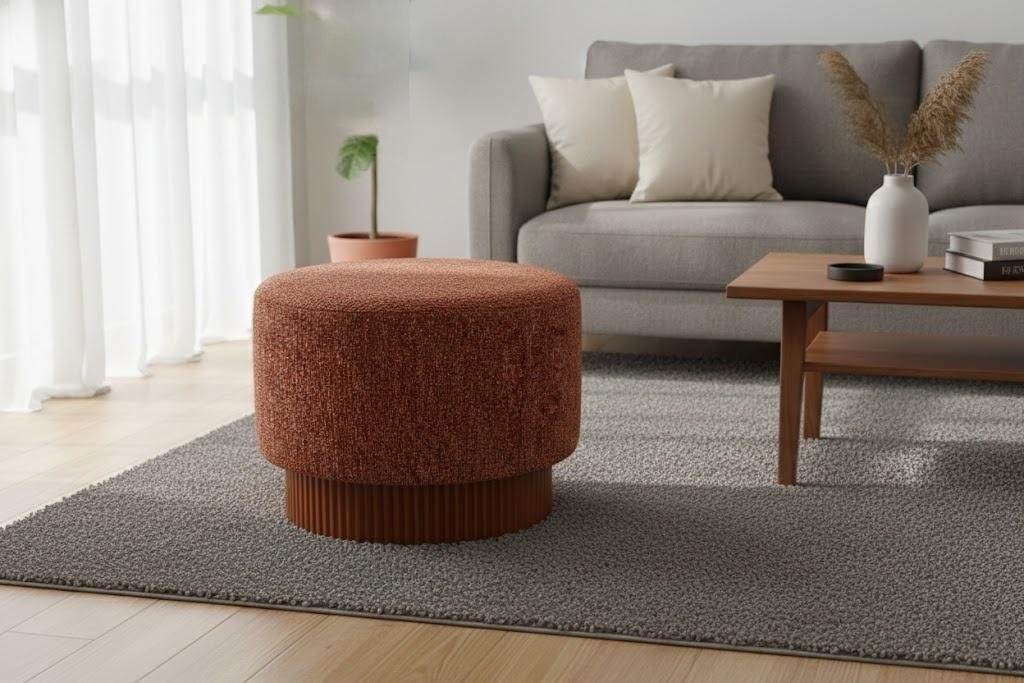 Elevate your furniture collection with our Terracotta Boucle Ottoman. This piece combines the cozy, high-end feel of premium boucle fabric with a structurally stunning ribbed base. The warm terracotta hue provides a sophisticated pop of color that anchors any modern or mid-century interior.